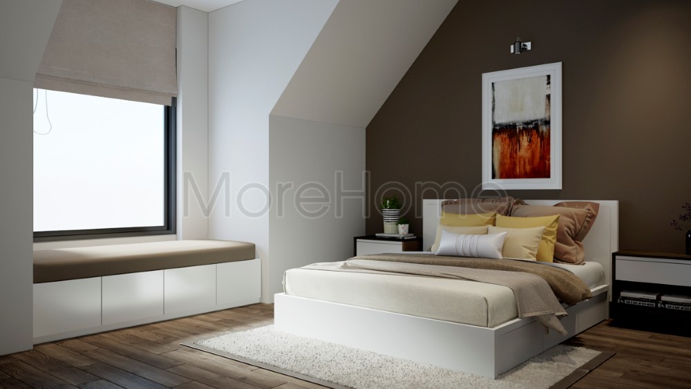 Đối với phòng ngủ diện tích nhỏ thì sẽ có được những không gian phòng ngủ bên cạnh cửa sổ để hút ánh sáng và tạo cho không gian phòng ngủ thêm rộng rãi thoáng đãng. Nó còn là nơi bạn có thể ngắm nhìn quang cảnh bên ngoài căn phòng vào mỗi sáng chủ nhật mà bạn ngủ nướng thức dậy.